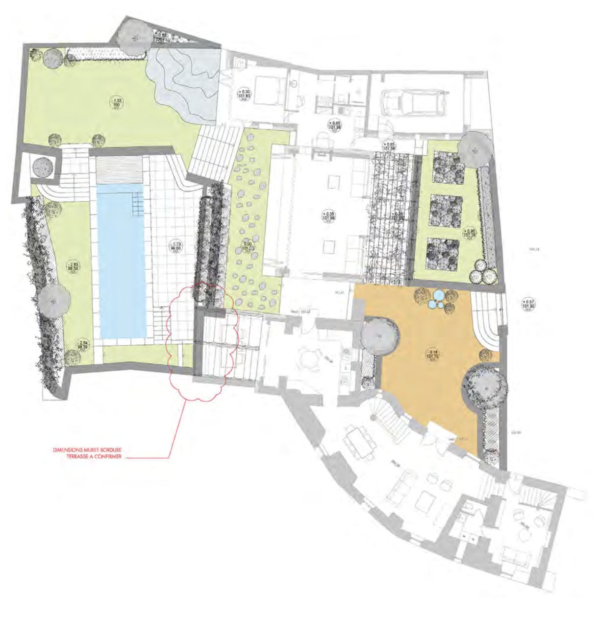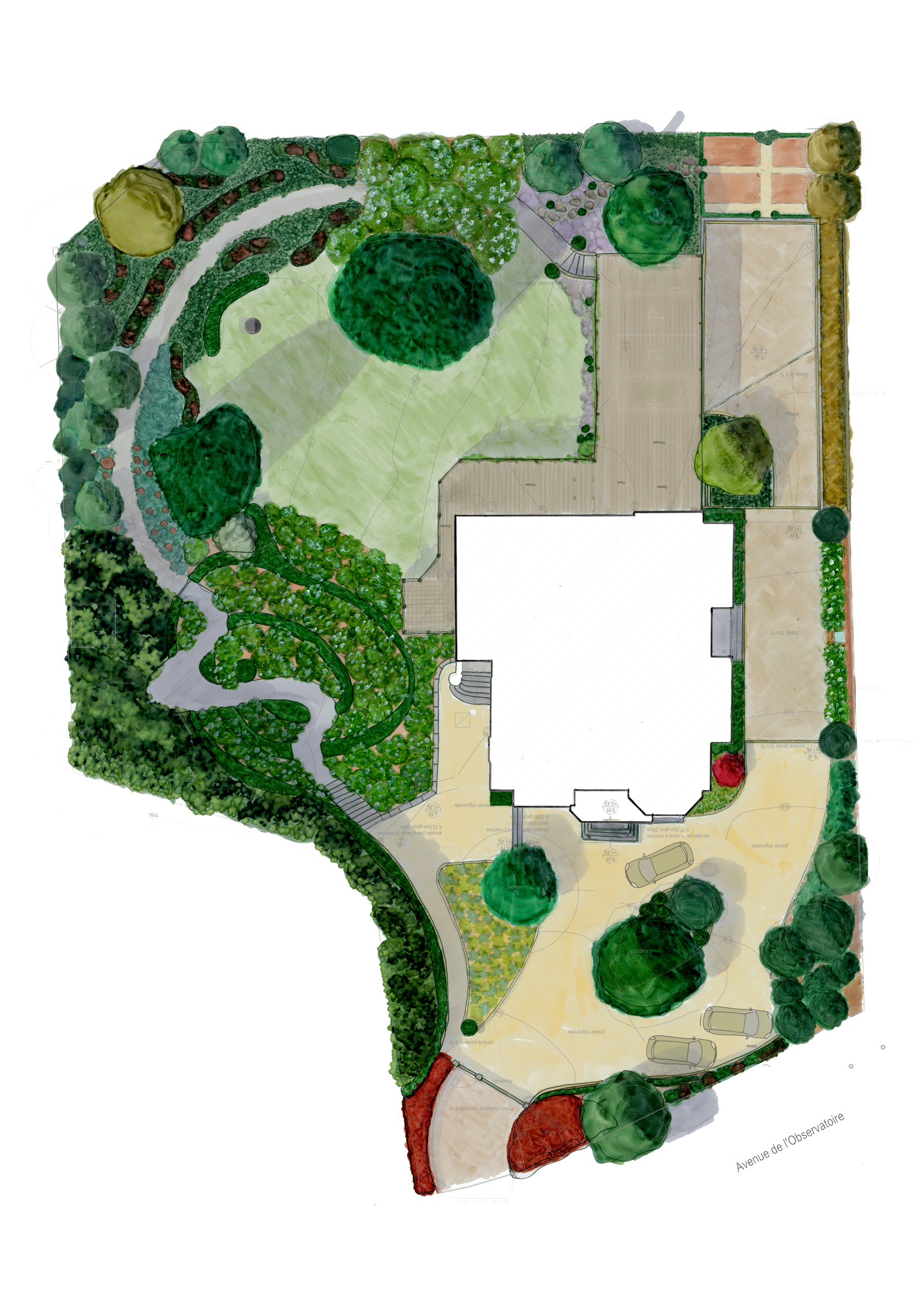 Sur base de l’esquisse approuvée, il s’agit de dessiner les éléments du projet et l’ensemble des ses composantes dans le détail et de faire le choix des végétaux et des matériaux à mettre en œuvre.